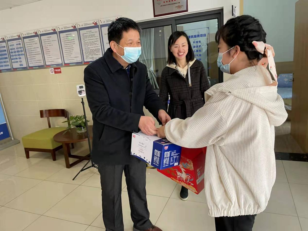 张朝民书记代表学院向学生们表达关心和慰问,为留校学生送上了牛奶、坚果大礼包等新春慰问品。张书记详细了解了每个学生留校的原因,家乡的疫情状况,以及在校的学习情况,嘱咐留校学生严格遵守学校疫情防控各项规定,积极做好个人防护,利用寒假时间做好学习计划,劳逸结合,在学校过一个充实而愉快的春节。黄中子副书记鼓励学生积极参加学校和学院组织的线上线下活动,督促学生完成每日健康填报并在留校学生群里打卡报平安,她表示学院将尽全力帮助同学们解决实际困难或需求。