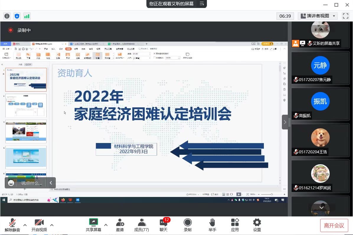 为进一步做好2022-2023年度家庭经济困难学生认定工作,落实学校资助工作要求,9月3日、14日,999策略手机论坛网址面向老生和新生先后召开家庭经济困难认定线上培训会暨新生资助政策线上宣讲会,学院资助工作负责老师艾昕、学院资助大使龙明垚,以及各年级相关学生参加了会议。